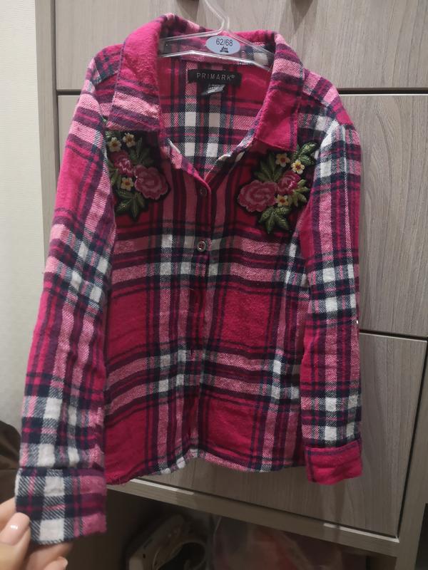Рубашка Primark По наборке 3-4 года, но маломерит Ткань на осень зима Длина 38 см, ширина 26 см, рукав 31 см.