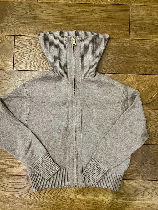 Дуже стильна та тепла кофта. Одягнули 2 рази, стан ідеальний. Розмір 10, але можна і на раніше. Фурнітура та матеріал на 10/10. Є кармани