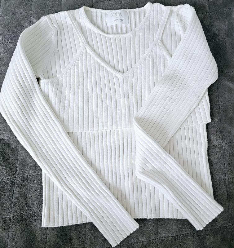 Дуже красива кофта. Какие-то невероятные. Сверху пришита маечка. Выглядит стильно. Длина рукава - от плеча 60, от горловины - 68. Длина 48. Тянется. Состояние новой.