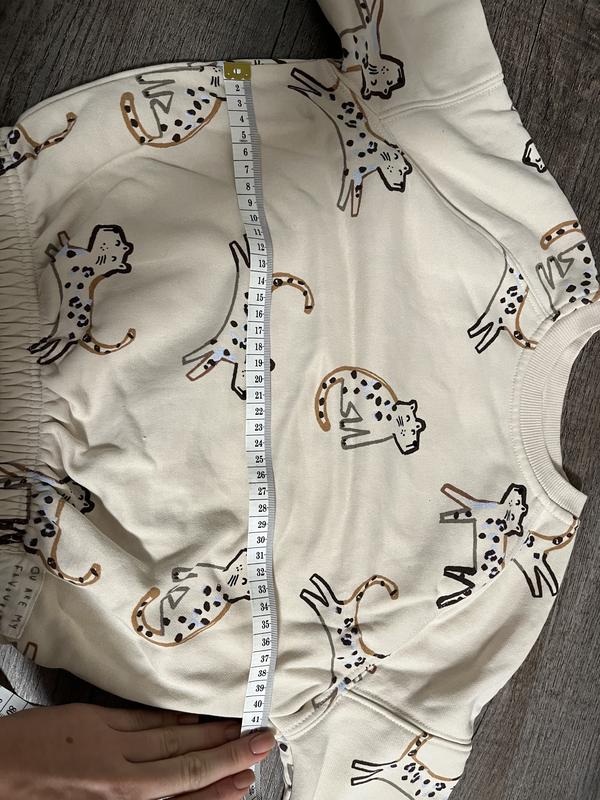 Отличная кофта на ребенка 2-3 года, хотя и размер написано 3-4, мне кажется на 2-3 она будет лучше. Маленькие пятна на спине, едва заметные. Теплая, очень стильная.