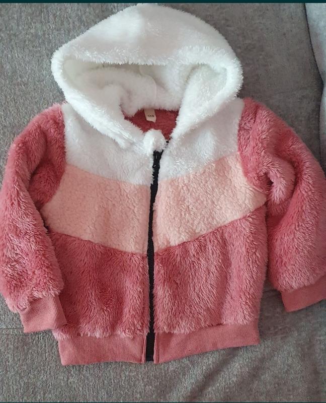 Нова,дуже м'якенька ,легесенька кофтинка для дівчинки на ріст 110(на бірці),але трішки маломірить,тому підійде на менший ріст,тоді можна використовувати як верхній одяг.Ідеально на прохолодну погоду.