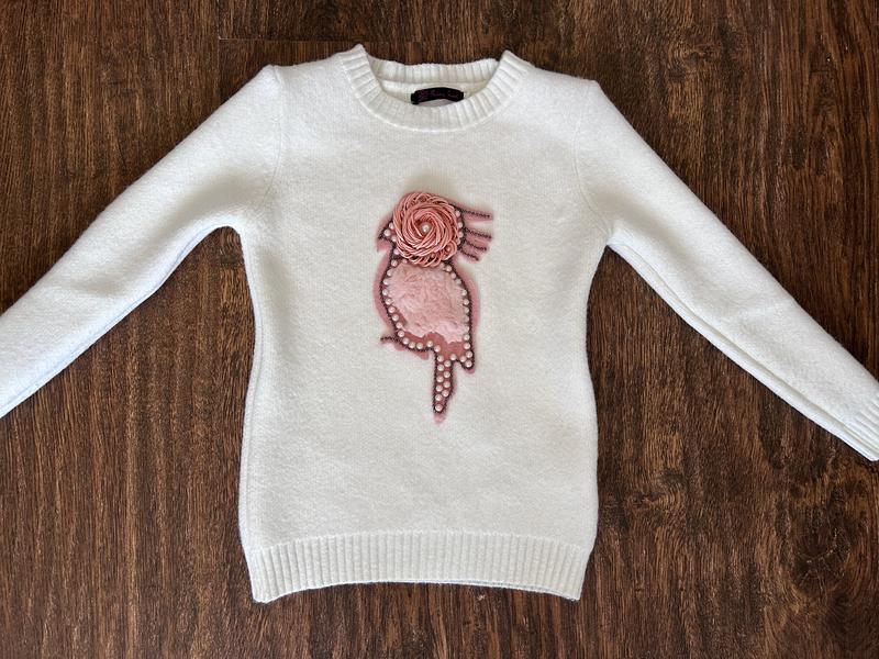 Очень качественная и теплая кофта, свитерик для девочки на 6 рочков. Рост 110-116. Стан идеален, одевалась два раза. Замеры: пог 31см, ткань хорошо тянется, длина кофты 44,5 см, длина рукава 40,5 см.