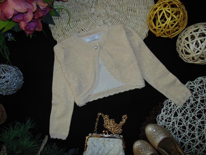 БУДЬТЕ завжди в курсi НОВИНОК,,АКЦІЙ,РОЗПРОДАЖІВ !!! *ПІДПИСУЙТЕСЬ та КУПУЙТЕ у одного продавця ЕКОНОМТЕ на ПЕРЕСИЛЦІ!!! ********** Золотисте болеро Primark на 2-3 років, зріст 92-98 см 81%котон,12%поліестер.7%люрекс -довжина по спине 23.5 см -ширина 30 см -плечі 24 см -довжина рукава : плече 6 см + рукав 36 см *від пахви 25,5 см 💸БЕЗ ТОРГУ 👍Пересилання Укр-Поштою або Новою Поштою 👍Пересилка УКРпоштою по повній оплаті 👍Відправка після оплати протягом 2-х робочих днів після оплати 🌼 * Купуйте у одного продавця економте на пересиленні 💞 * МЕГА вибір взуття та одягу для діток до 15 років 💸 ПОВЕРНЕННЯ і ОБМІНУ НЕМА (робіть вибір ОБМІРКОВАНО