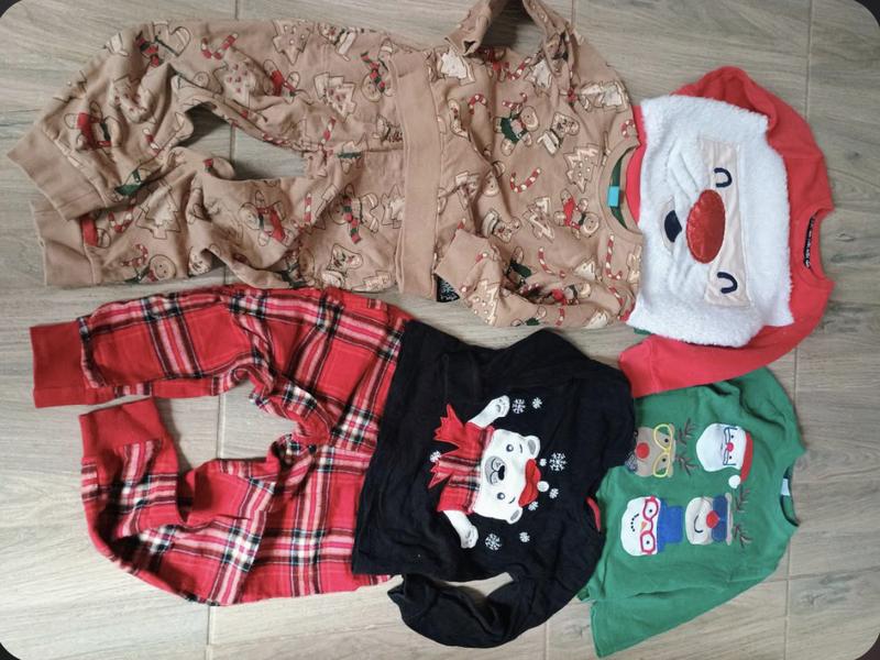 Продам следующий набор: 1) пижама с мешком 3-4 года состояние отлично 2) костюм для садика с кексиками 3-4роки, состояние отличное 3) теплый свитер с головой Деми Мороза 3-4 года, состояние отмены 4) зеленый реглан 3-4роки, состояние отлично.