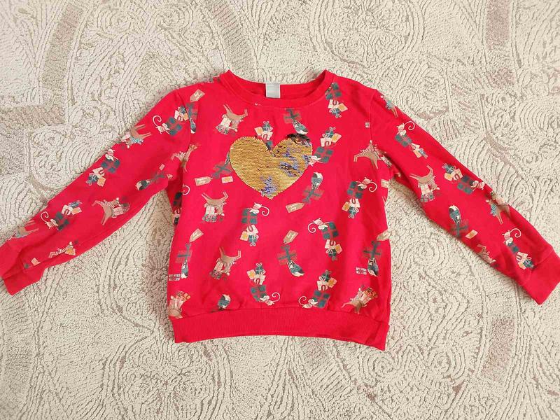 Симпатичная новогодняя кофточка для девочки с сердечком из пайетков