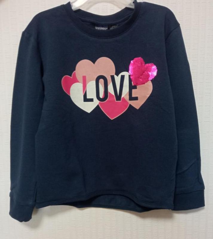 Хлопковый свитшот на девочку с ярким принтом с паетками от брендового производителя lupilubез утепления,двухнитка. Замеры 110/116 длина спереди 42,зади 45см. дпг-39 длина рукава от плеча-40см.