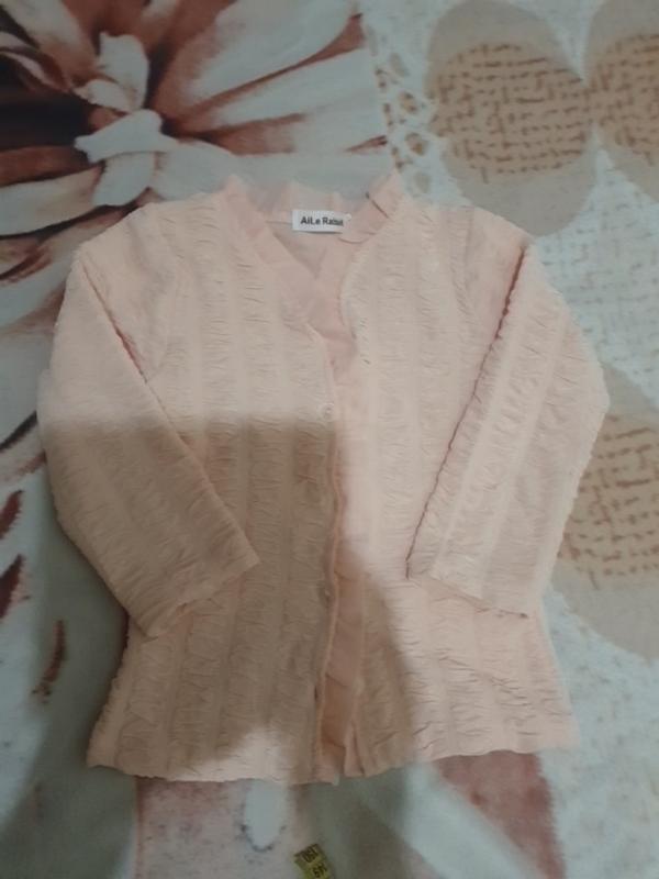 симпатичная.легкая.кофточка.можно на платье на какой-то праздник.ткань тянется.по наборке на 120см но маломерит.быта на 110-116см