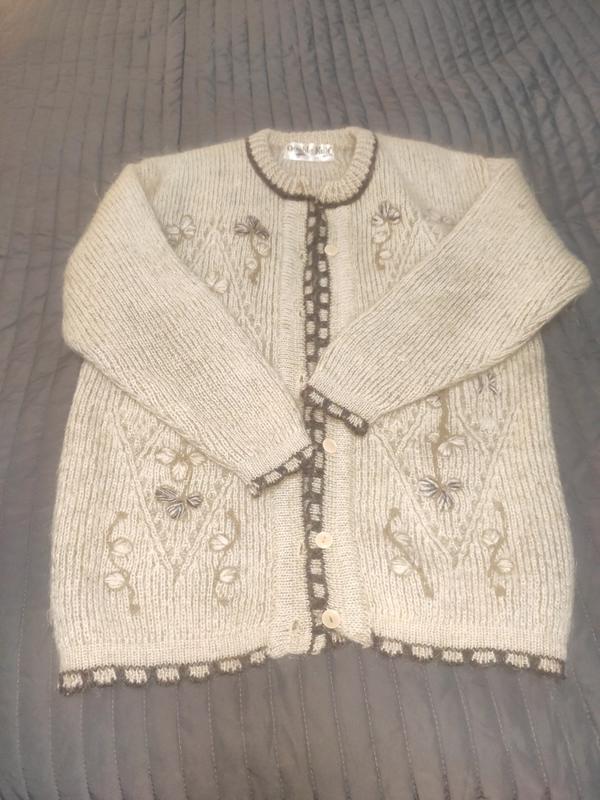 Теплая кофта, кардиган на девочку -9-10-11 рочков, ориентируйтесь по замерам, натуральная шерсть, контраст немного полиэстера есть,длина 60 см, ПОГ 45 см, рукав 43 см, но считайте, что он приспущен, кофта на пуговицах, нюанс: 2х пуговки не хватает,lock в шкафу много лет, без дырок и пютен, забирайте за 2 чашки кофе☺️
