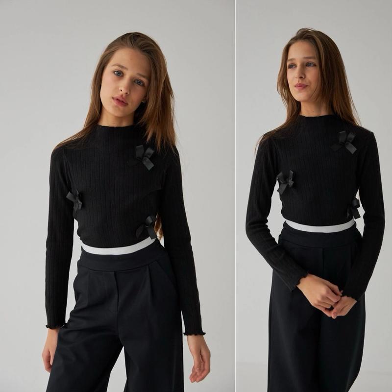 Лонгслив ткань мягкий трикотаж хорошего качества, хит сезона - трендовые бантики. Замеры-длина/пог/рукав 134-39/30/55 140-40-32/56 146-43/34/60 152-43/36/62