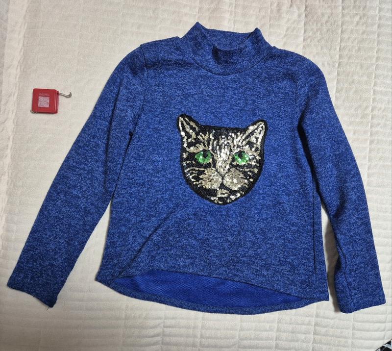 Кофточка на рост 140, тепленькая,стан хорош.длина 45, по груди 39, рукав 48.