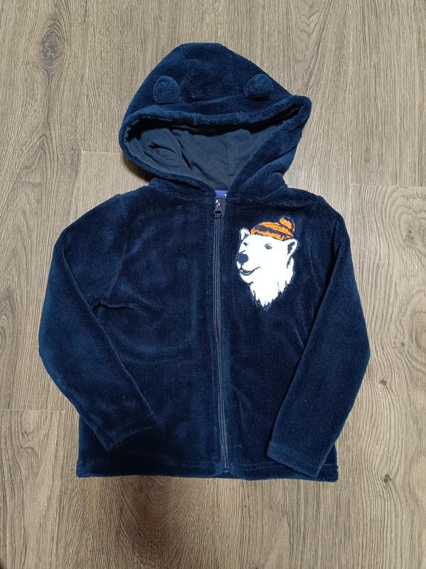 Тепленькая мыла флисовая кофтаз ушками фирмы Lupilu состояние идеально. Длина кофты: 41 см Длина рукава: 38 см