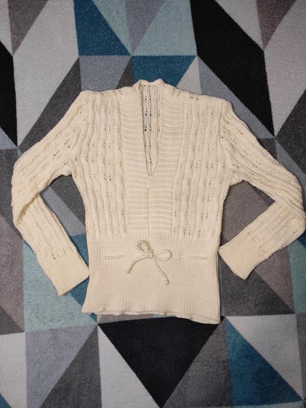 Кофточка ажурная вязаная, без бирки, не ношена, просто 76. На возраст около 10-12 лет, но смотрите замеры: длина от плеча 47 см, по спинке 51,5 см, рукав 53 см, ПОГ подмишками 36 см, ПОТ 32 см, замеры не растянутом состоянии, учтите, что кофтинка хорошо тянется