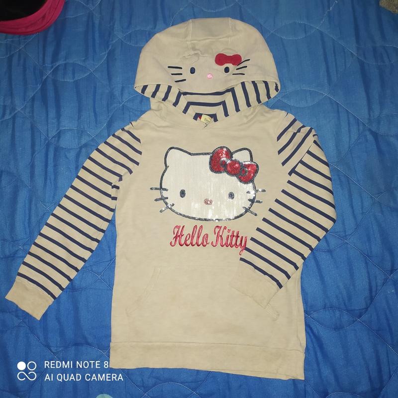 Худи с котиком. Есть капюшон, карманы. Состояние очень хорошее. Длина 44 Рукав 40 Подмышками 35