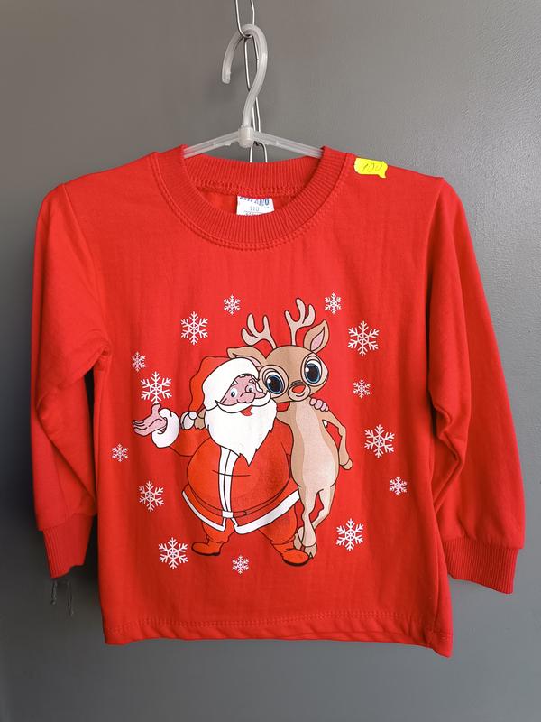 кофта детская унисекс тепла на флісі ткань трикотаж на флисе цвет красный, с новогодним принтом размер 104 см