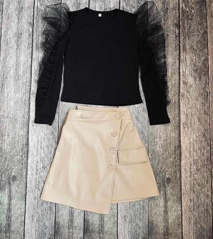 Нарядная кофточка для девочек. Ткань: рубчик + рукав -фатин. Цвет - черный. Замеры: 140 длина - 42см, полуобхват груди - 37см, рукав от плеча - 53см. 146 длина - 43см, полуобхват груди - 37см, рукав от плеча - 55см. 152 длина - 44см, полуобхват груди - 39см, рукав от плеча - 56см. 158 длина - 46см, полуобхват груди - 42см, рукав от плеча - 60см.