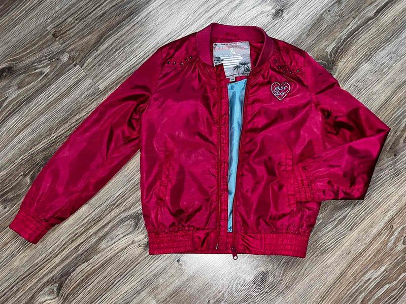 Легкий тоненький бомбер. Стан прекрасний, є кілька ну дуже маленьких і не помітних нюансів, показала на фото. Вони знаходяться на зворотній стороні рукава, тому абсолютно не помітно
