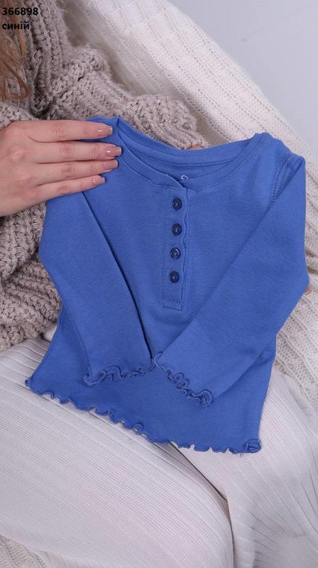 М’який гольф із рюшами на рукавах та понизу — чудовий варіант для садочка, школи чи прогулянок! Колір — насичений синій Матеріал: 100% коттон — дихає і не парить Країна виробник: Туреччина Якість: відмінна Доступні розміри: Розмір 6: • Напівобхват грудей: 22 см • Довжина рукава: 23 см • Довжина виробу: 28 см Розмір 18: • Напівобхват грудей: 24 см • Довжина рукава: 27 см • Довжина виробу: 33 см Переваги: • Не кошлатиться • Легко переться • Зручний для щоденного носіння Бірка присутня, пакування — пакет