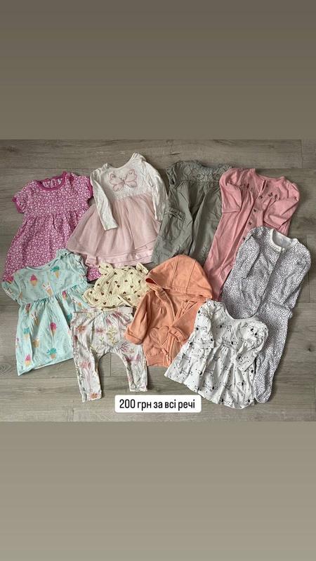 Боді, сукні, кофтинка, панама, на дівчинку віком від 5-9м Розміри пишу як ми носили, а не по етикетках , ми були худенькі но високі)
