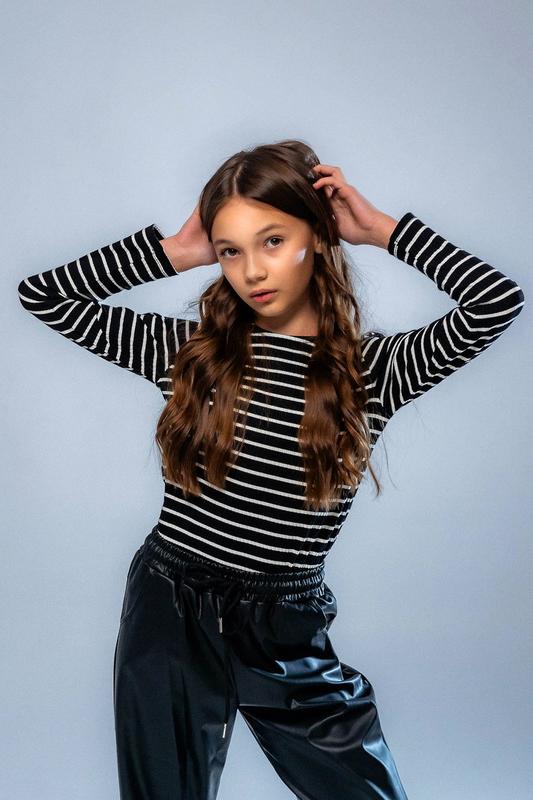 Стильний лонгслів для дівчаток, виготовлений із якісного, бавовняного полотна "Рубчик". Модель стандартного крою із довгим рукавом. Він виглядає красиво та цікаво, а високий вміст бавовни у виробі забезпечить комфорт та зручність у використанні. Полотно: рубчик. Склад: 95% бавовна, 5% еластан. ,,2827