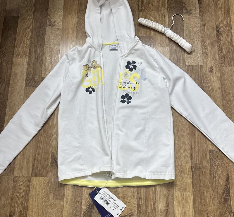 Кофточка подойдет для красавицы 9-14роков от 152 до 160см. Идеальная кофточка для девочки от качественного итальянского бренда Primigi.Величие такой прекрасной кофточки была 25 факультета, приобретенная в Милане. Уценка желтого пятна в зади кофточки (изображение присуще), которое с большой вероятностью можно отмыть. Несмотря на такой небольшой дефект кофточка очень красиво смотрится и при этом очень удобной со всеми этикетками 🫶🏻 Склад 95% котон , 5% еластин