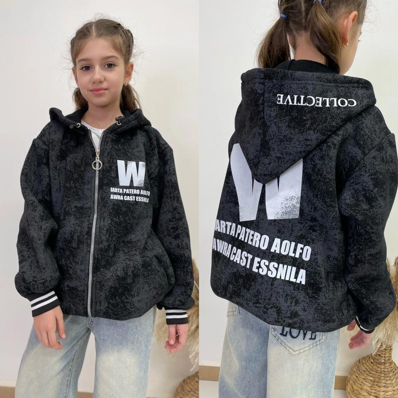 Крутой бомбер Очень теплый С капюшоном и карманами З трендом накатом Ткань трехнитка на флисе Хорошее качество! Рост/длина/пог/рукав от горловины похибка+-2см 152-158/64/53/63-1шт