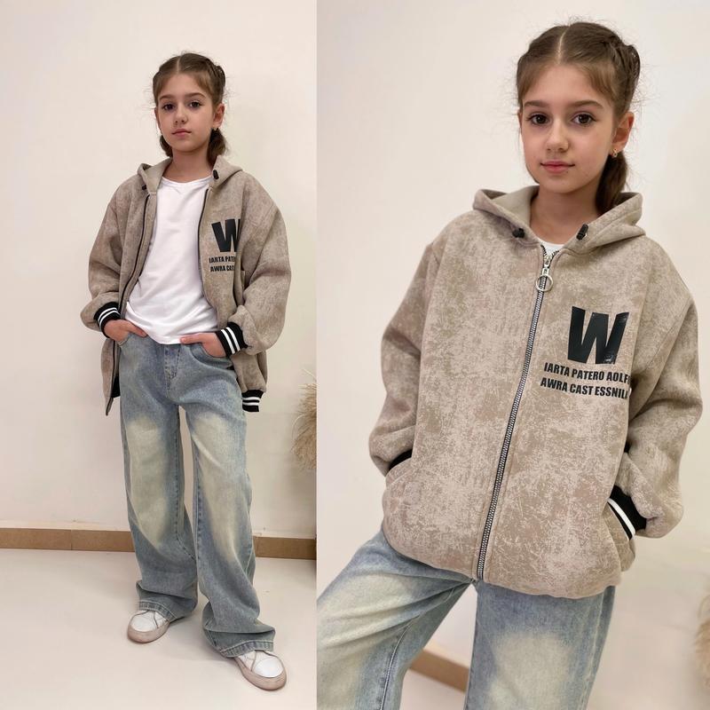 Крутой бомбер Очень теплый С капюшоном и карманами З трендом накатом Ткань трехнитка на флисе Хорошее качество! Рост/длина/пог/рукав от горловины похибка+-2см 146-152/62/52/62-1шт