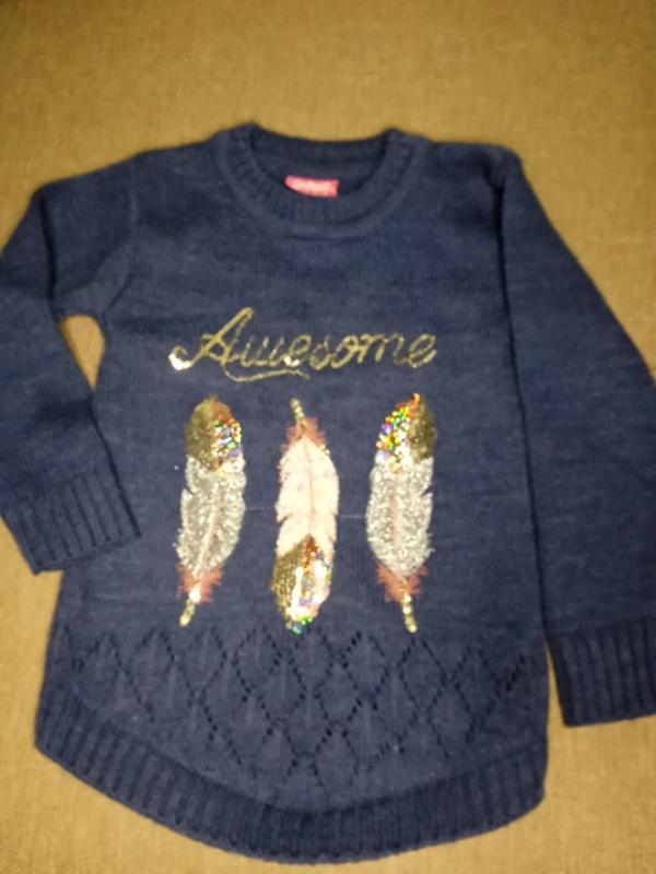 Свитер для девочки, на возраст от 4 до 6 лет. Обхват груди 31, обхват талии 31, длина рукава 35