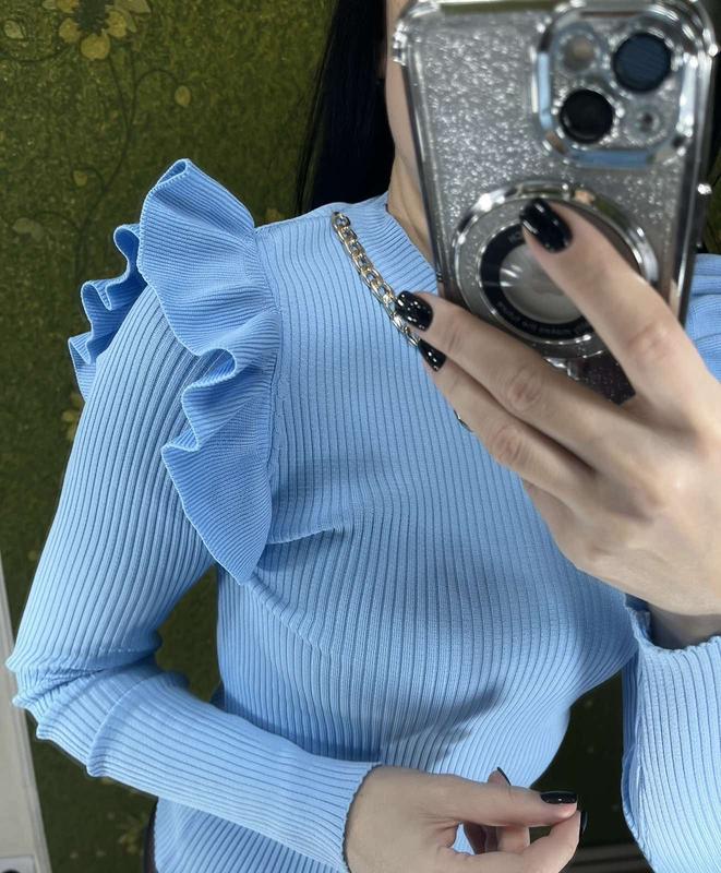 Женская или подростковая кофточка в размере с, очень нежного голубого цвета в очень красивом состоянии, длинный рукав,мени часто бывают закороткие, а здесьпрям идеально, по груди,талии хорошо тянется. Украшена цепочкой...