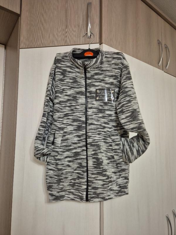 легкая черно- белая кофточка на замке с карманами
