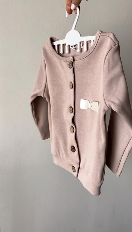 Кофтинка-кардиган на девочку. Нежный цвет беж, на пуговицах. Очень хорошее качество, производство Турция. Размер на 2-3 года. Замеры: длина 36см. Полу обхват 27см, длина рукава 29см Цена - 420грн 🏷️