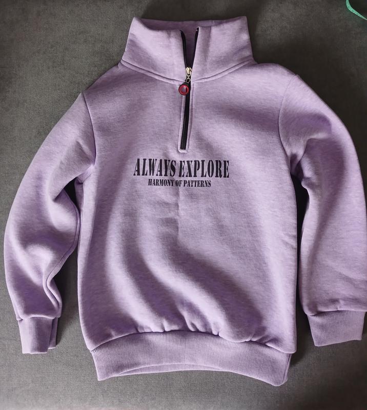Теплая кофта для девочки, сиренево-меланжевого цвета. Новейший, не подошел размер. Качественная трехнитка на флисе, не кашлатится. На возраст где-то 9 лет, но смотрите замеры на фото.