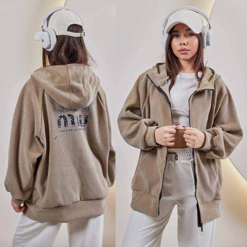 Зіп-бомбер ОВЕРСАЙЗ з капюшоном на утяжці на блискавці по спинці сучасний накат є кишені тканина щільний вельвет-діагональ на трикотажній основі Може бути замість весняної куртки Шикарна якість! зріст/довжина/пог/рукав від горловини похибка+-2см 140-146/62/60/58-1шт 146-152/63/61/60-1шт 152-158/64/62/62-1шт 158-164/67/63/64-1шт