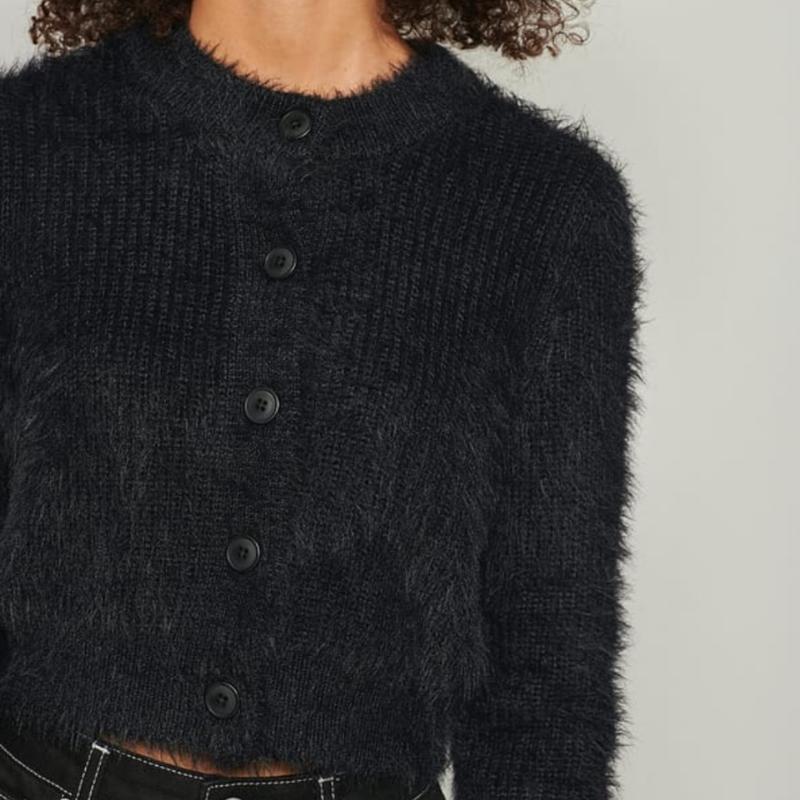 Короткая вязаная кофточка, пушистая, тёплая и пуговицы Размер XS (подойдет на S и маленькую М)
