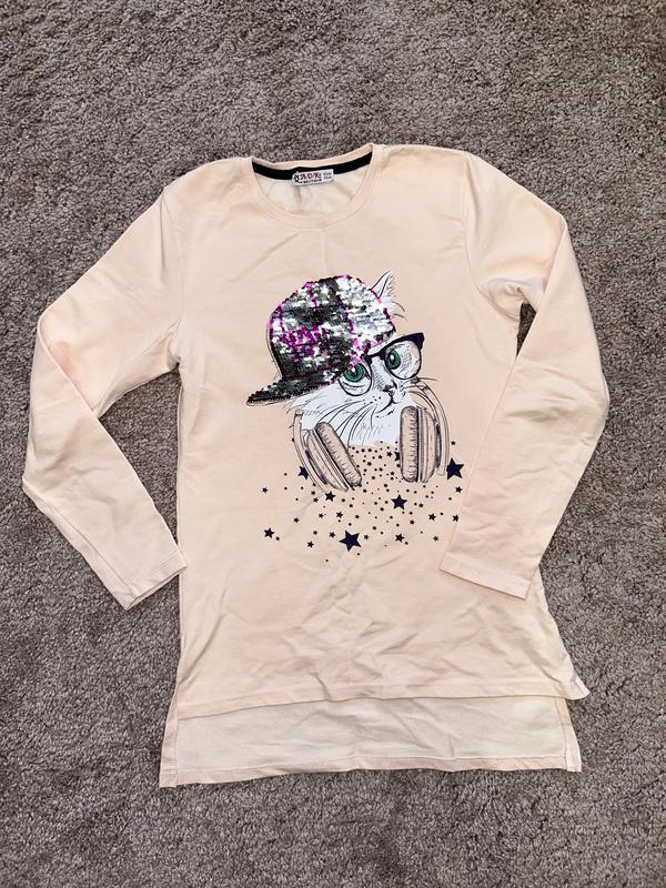 Паєтки можна змінювати сторонами, тим самим змінюючи їх колір. Вживане, але стан ідеальний. Довжина по спині - 71,5 см. Довжина спереду - 62,5 см. Довжина рукава - 56 см. Тканина добре тягнеться.