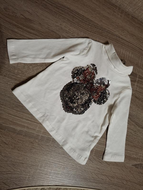 Гольф, кофточка для девочки Микки с переворачиваютсями пайетками. Отличное качество, материал очень красивый, тянется. Сзади на горлышке застегивается на кнопочки, что облегчает одевание. Идеально на весну. Размер 62 (3 -6 мес ).