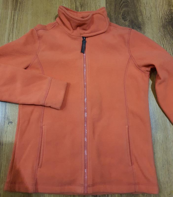 Флиска, в идеальном состоянии. Надевали несколько раз на отдыхе. Очень теплая и приятная к телу. На рост 152 см. На молнии, имеет два кармашка. Воротничок на липучке.