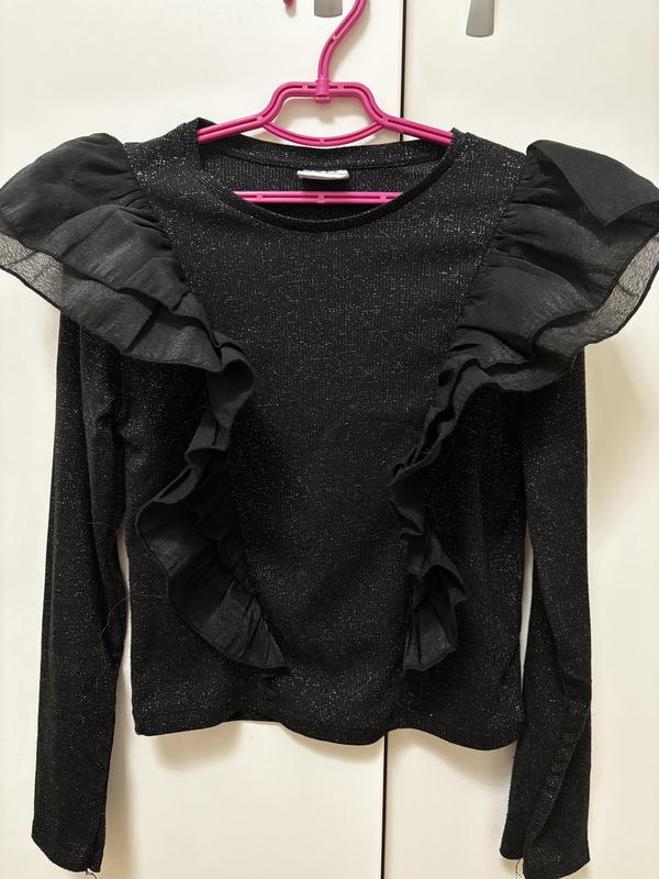 Дитяча кофтинка zara чорного кольору з гарними рюшами для дівчинки 11-12 років 152 см