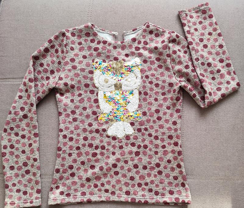 Стильная трикотажная кофточка с блестящим принтом совы для девочки