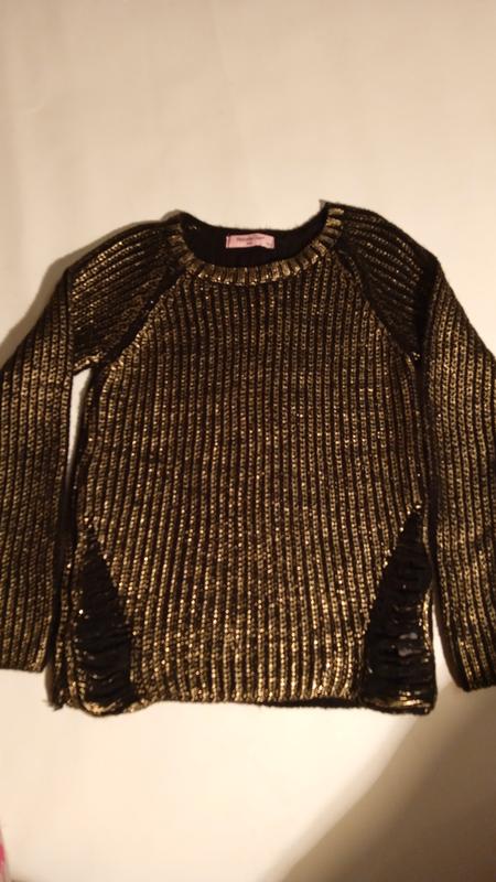 красивый свитерик,золотистый, плотная вязка,длина58,пог46,рукав от горловин63,принт,разработанные петли "по низу по бокам
