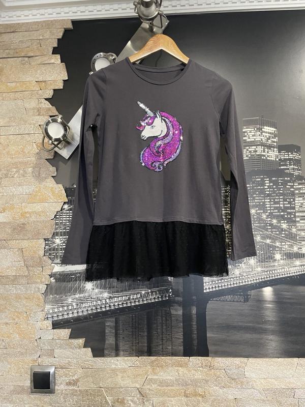 Детская кофточка туника бренда С&А из 100% коттона темно серого цвета,размер 158/164 Замеры:ПОГ 43 см,плечи 35 см, длина рукава 60 см, длина по спинке общая 64 см, длина без черного кружева 49 см.