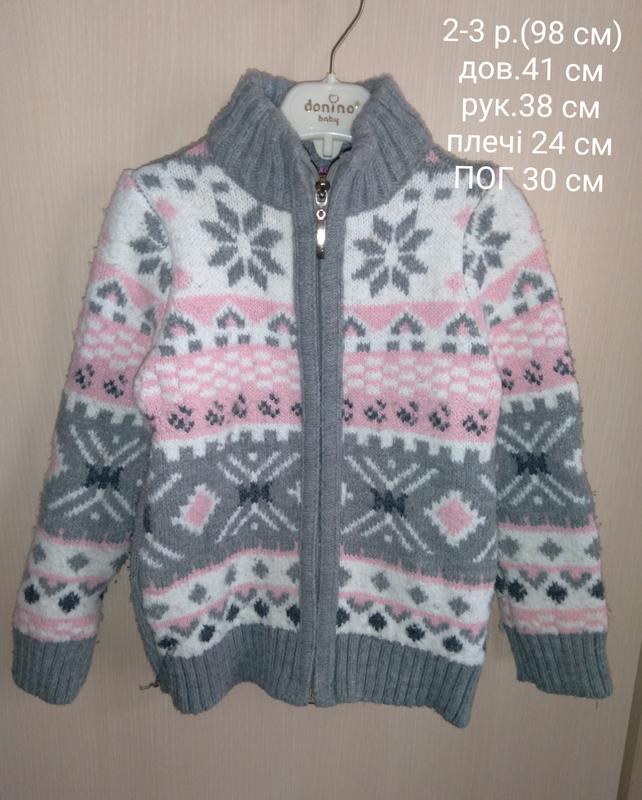 Тепла кофта на замку.Розмір вказаний 2-3 роки,але ми носили довше.Орієнтуйтесь по замірах.Заміри на фото.