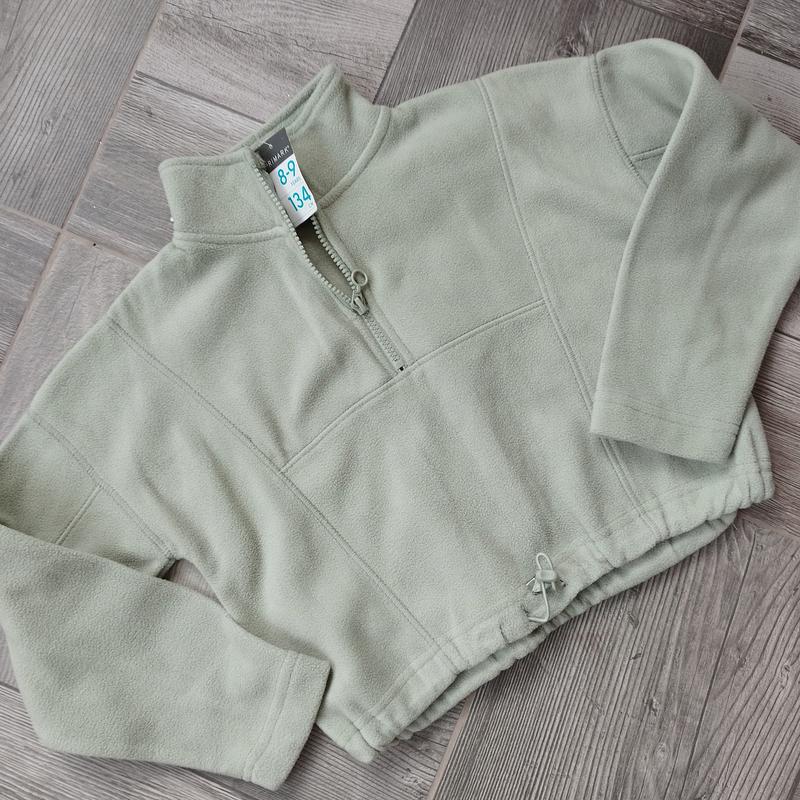 Бомбезна укорочена фліска Знизу можна затягнути,класна річ ✅8-9 років 134см Довжина 39см, ширина від підмишки до підмишки 45см,рукав від плеча іде приспущений 37,5си,від горла 54,5см см