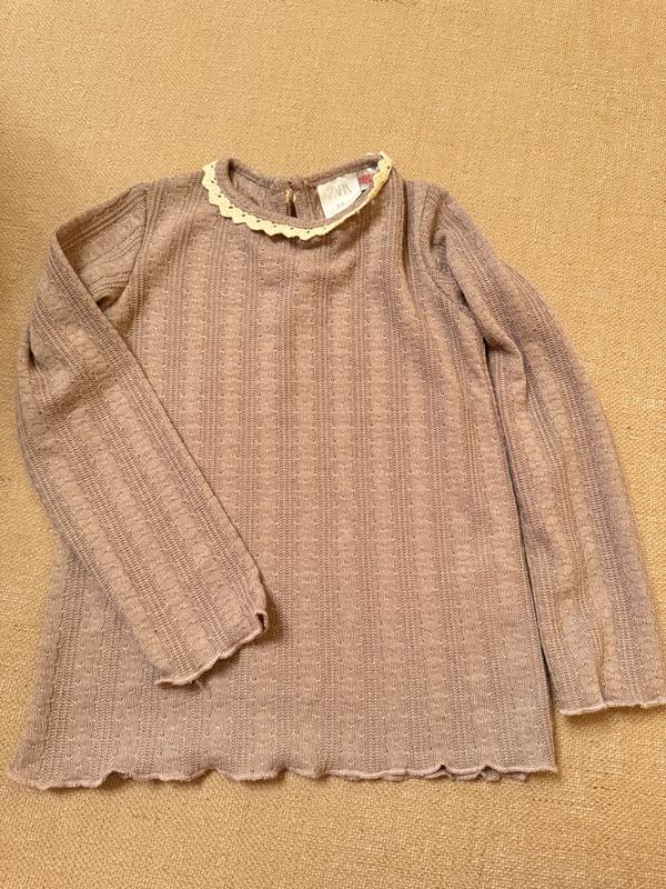 Гаренька кофточка для девочки, узкая, обтаченная. С рюшиками у горловины. На 4-5 років, на 110 см.