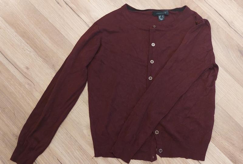 Кофточка для девочки в идеальном состоянии фирмы Atmosphere, на возраст около 9-11 лет. Цвет бордовый. Дефектов не имеет. Купила заграном.