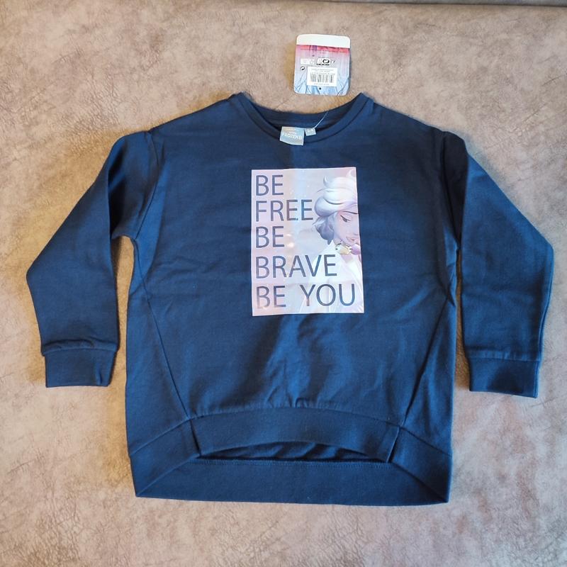 Кофточка 3-4 роки.Довжина по спинці 42 см,ширина 38 см.Нова з біркою.Є дефект на фото видно прокол картинки від камінчика і потріскання на малюнку .Можна перешити якийсь більший камінчик.Бавовна.Легкий фліс в середині.Гарна якість.Можа носити дома.