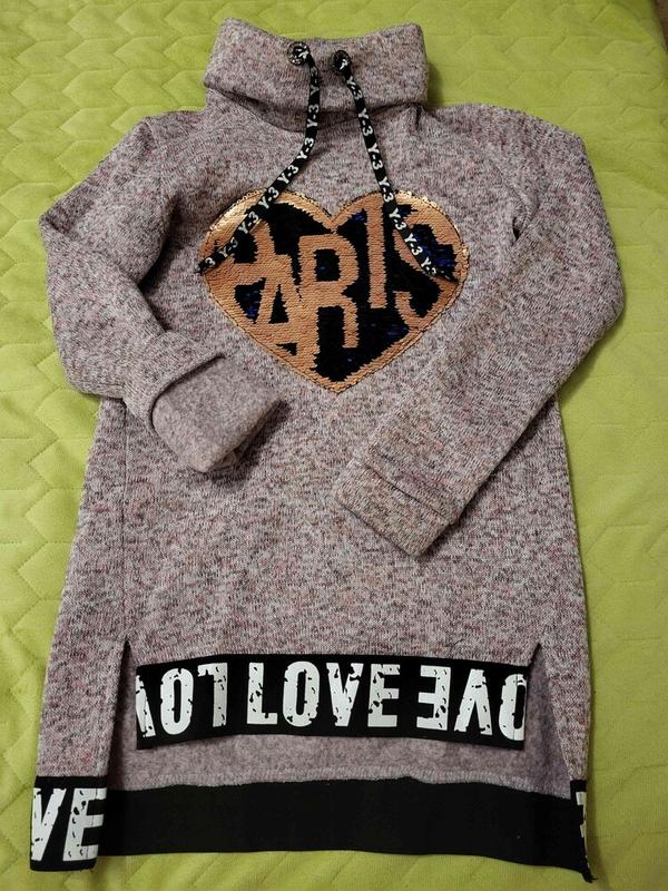 Очень теплая туника с пайетками, р. 128-134