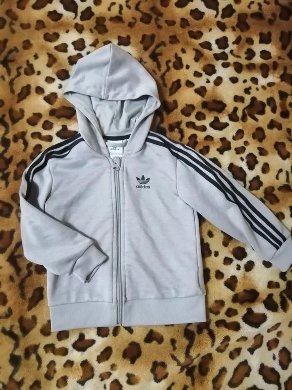 Спортивная кофта на молнии с капюшоном. На 2 года ориентировочно. Серого цвета. Состояние идеал. Один раз одет.