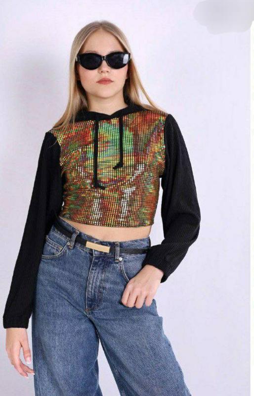 Кофта подростковая для девочки в рубчик с блестками