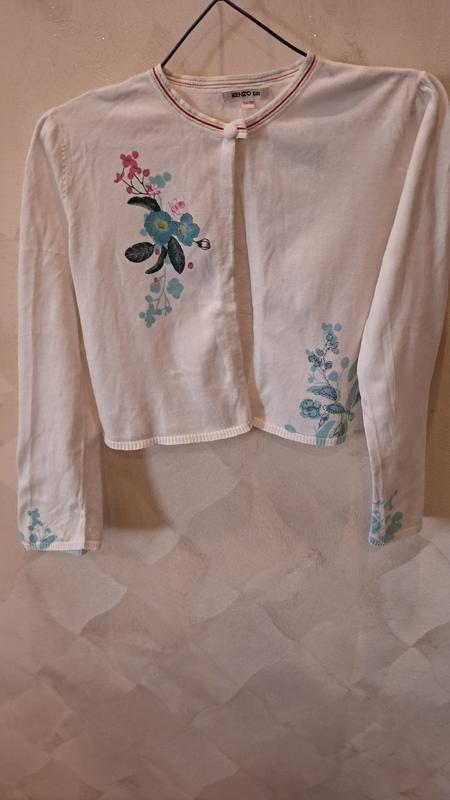 Кардиган Kenzo, хлопок, кнопка -гудзик, белого цвета с принтом. Подойдет под топ, футболку, рубашку. Нюанс на осианньому фото.
