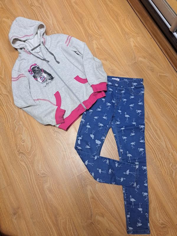 Комплект кофта с джегинсами на 8 лет в хорошем состоянии без дефектов. Кофта длина 51 Рукав 48 ПОГ 42 Есть карманы Джегинсы длина 75 Шаг 56 ПОТ 28 ПОБ 31-32 Сзади карманы